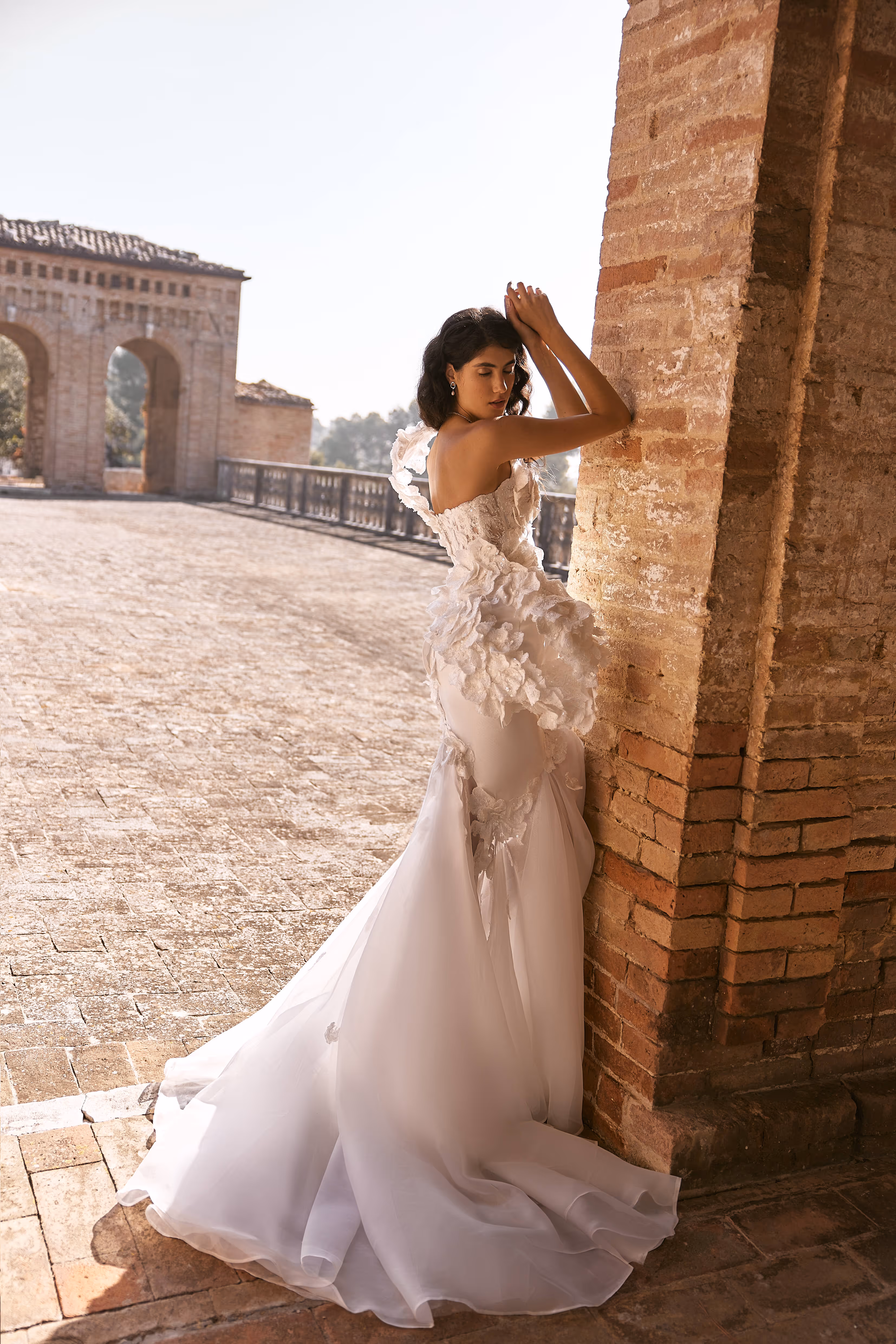 Підкресліть свою весільну чарівність сукнею, що гармонійно поєднує мистецтво та вишуканість. Драпірування та складний декор створюють образ, що зачаровує своєю майстерністю. Легка спідниця та величний шлейф з органзи додають повітряності кожному руху, створюючи ефектний силует. Ця сукня стане ідеальним вибором для наречених, які прагнуть елегантності з ноткою величі, зробивши ваш вихід незабутнім.