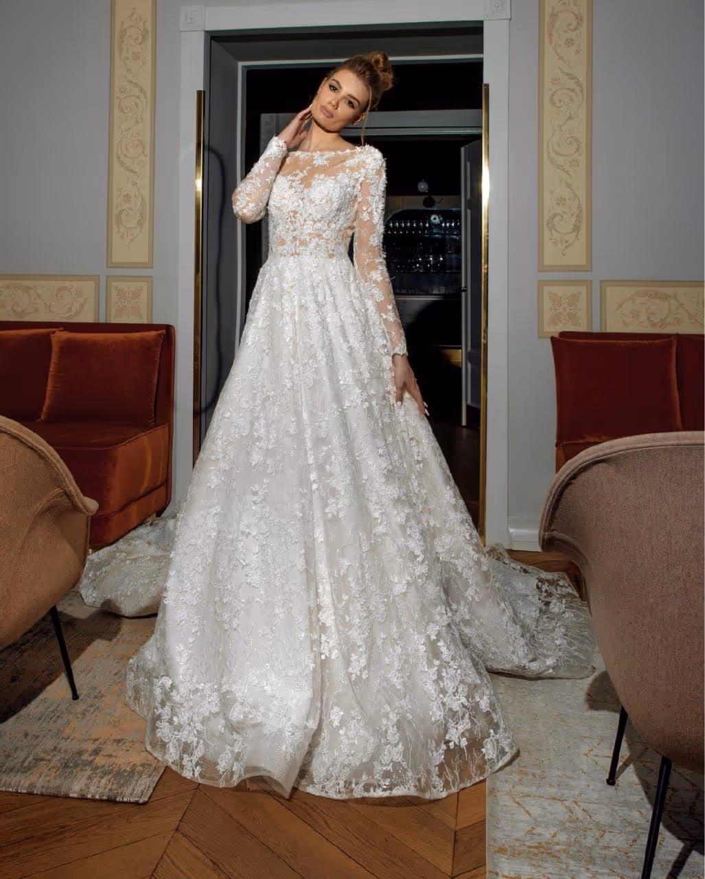 Ця надзвичайно елегантна сукня зачаровує своєю витонченою красою. Мереживо, яке прикрашає корсет та рукава, надає образу вишуканості і загадковості. Довгий шлейф додає відчуття розкоші та грації, а відкрита спина підкреслює жіночність та витонченість образу. Ця сукня створена для того, щоб ви почувалися особливо і неперевершено у важливий день вашого життя.